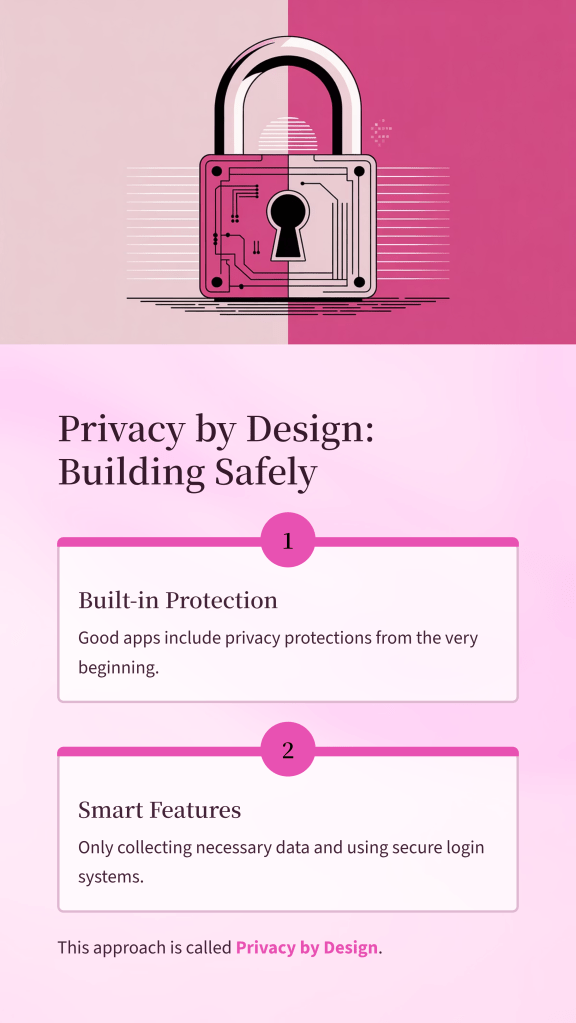 Good apps think about privacy from the start. The SweetBites app was built with secure login and minimum data collection – an example of Privacy by Design.